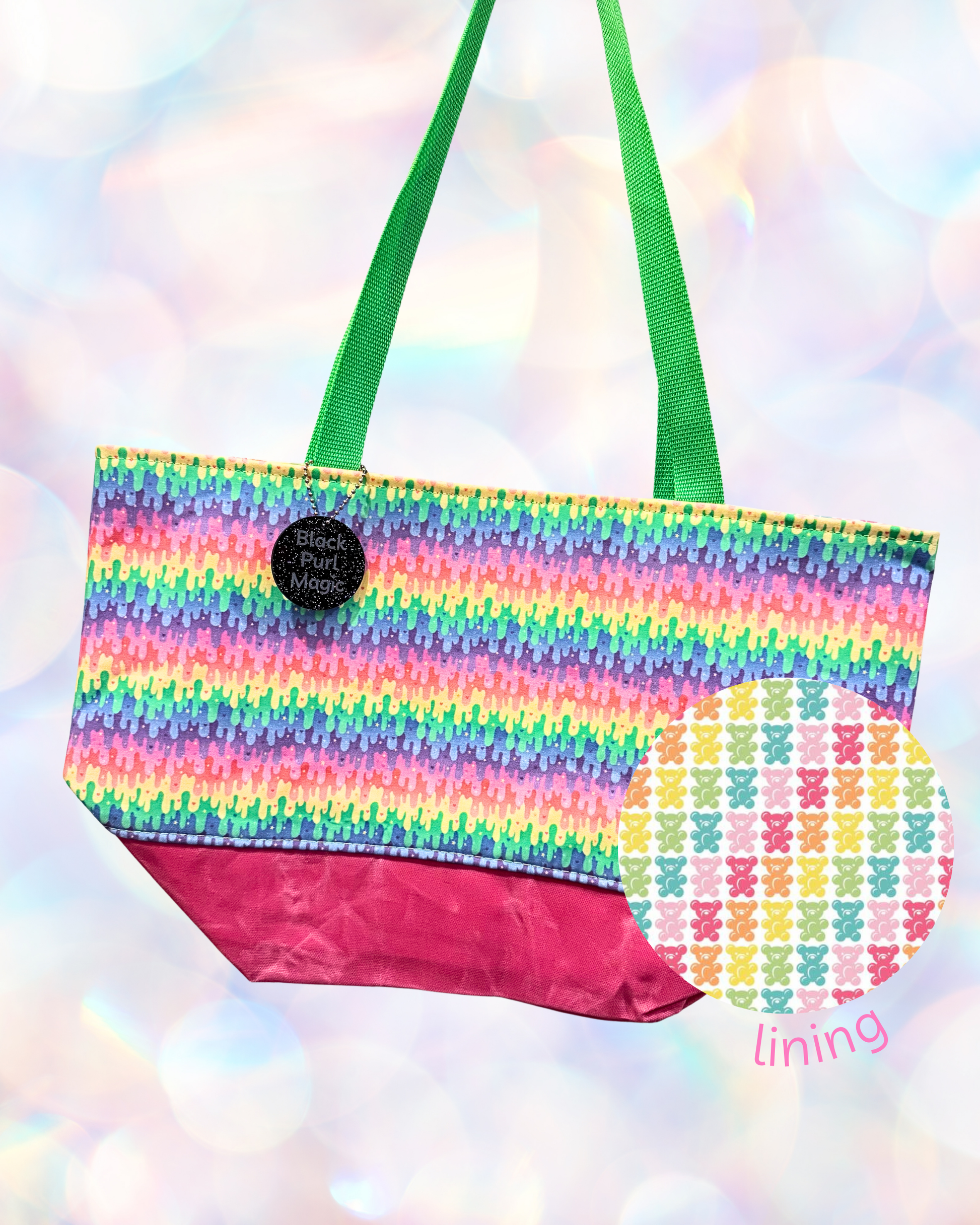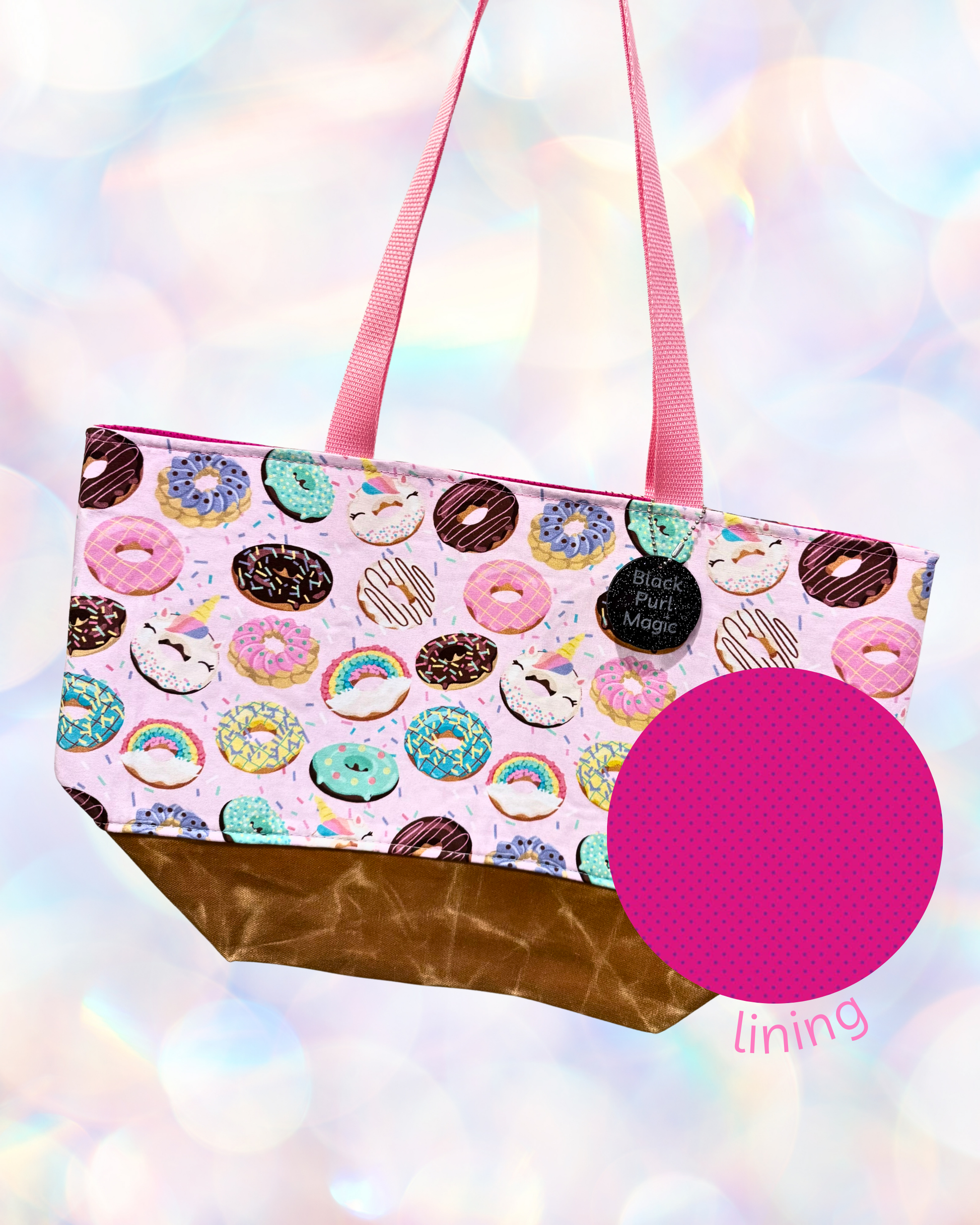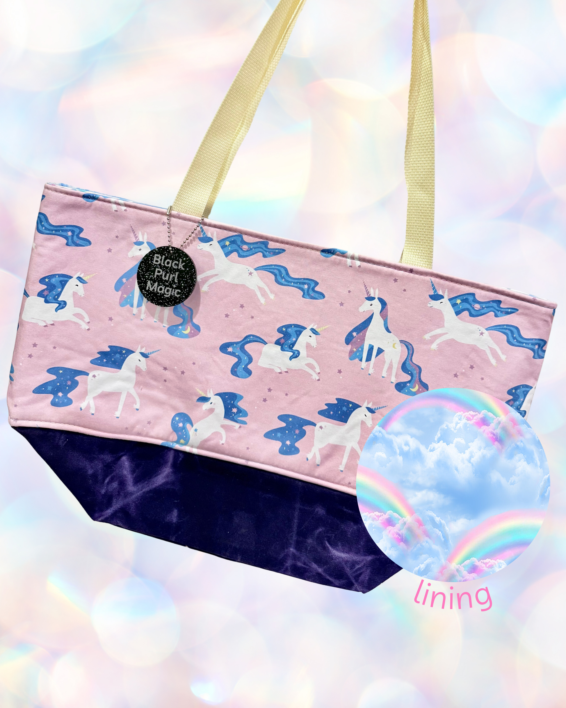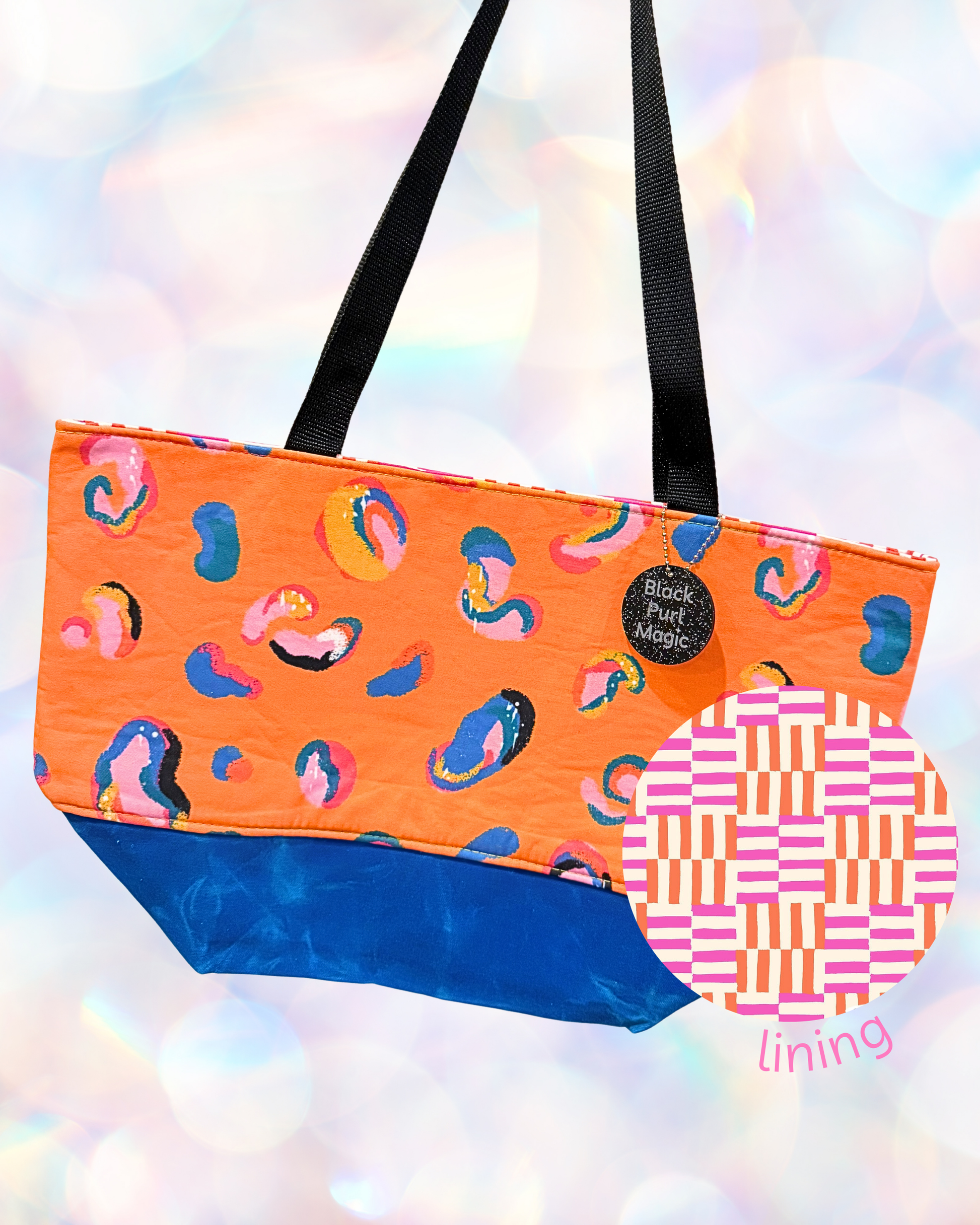 A sweater sized tote in fun prints with a little dose of magic on the inside!